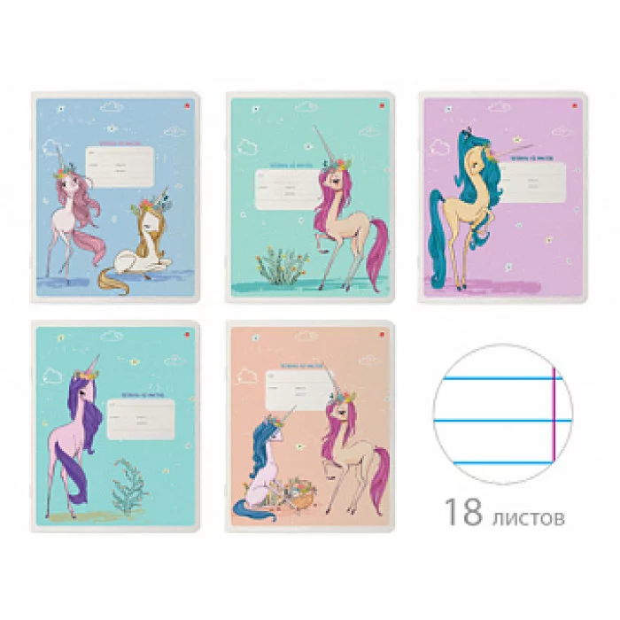 ТЕТРАДЬ 18Л. ЛИН. "МОДНЫЕ ЕДИНОРОГИ" 5 ВИДОВ ТЛ2036