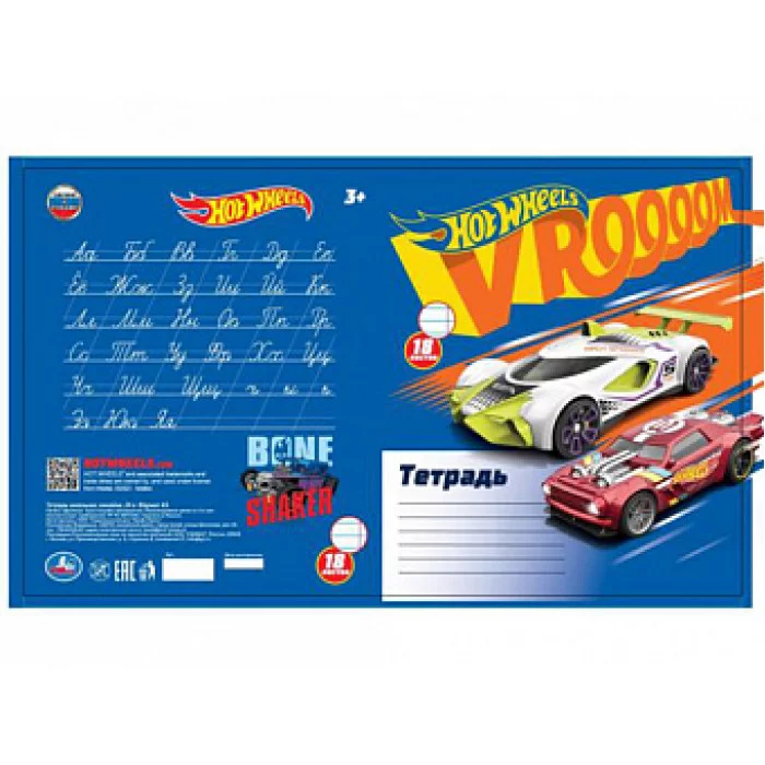 С красочной тетрадью, украшенной изображением легендарных гоночных машинок, учиться в школе будет намного интереснее, а прописанные курсивом буквы на её обороте послужат хорошей подсказкой в процессе обучения письму.