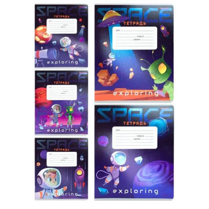 Тетрадь КЛЕТКА 18л. ПРИКЛЮЧЕНИЯ В КОСМОСЕ (Т18-3844) цв.мел.обл.хол.фольга, твин-лак, Т18-3844