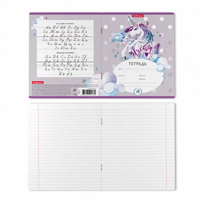 Тетрадь школьная ученическая ErichKrause® Dream Unicorn, 18 листов, линейка 49178