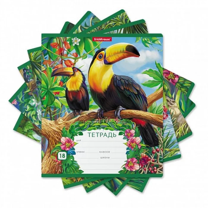 Тетрадь школьная ученическая ErichKrause® Экзотические птицы, 18 листов, линейка 49192