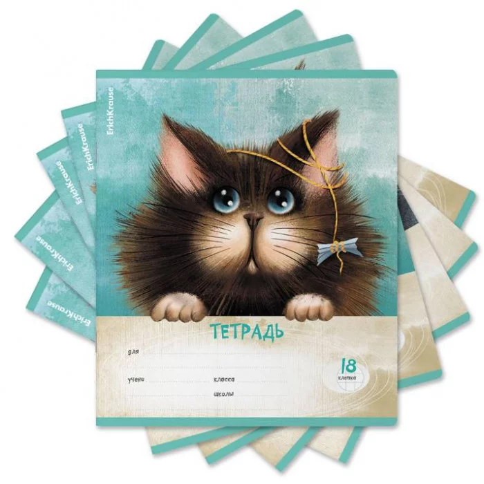 Тетрадь школьная ученическая ErichKrause® Funny Cats, 18 листов, клетка 54193 018010154-54193
