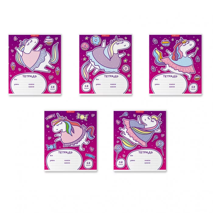 Тетрадь школьная ученическая ErichKrause Единорожка 18 листов клетка 51417