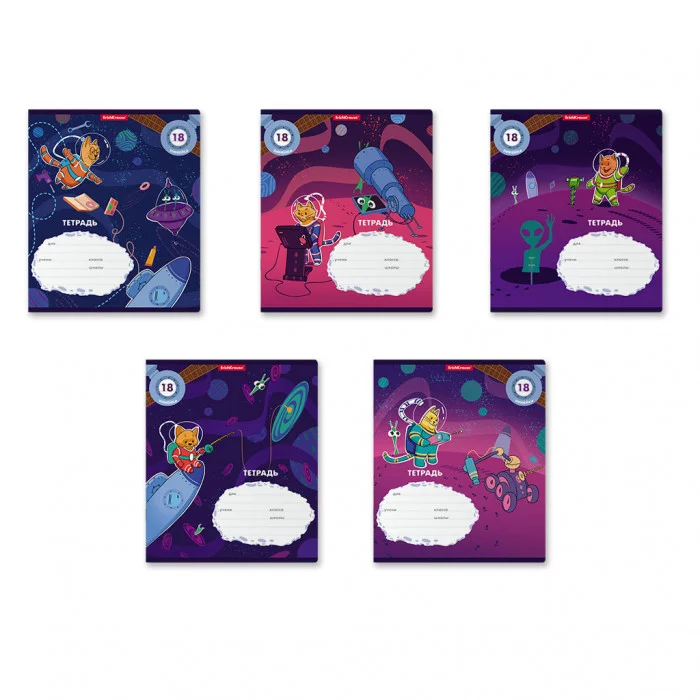 Тетрадь школьная ученическая ErichKrause Коты в космосе, 18 листов, линейка MIX-PACK 58256