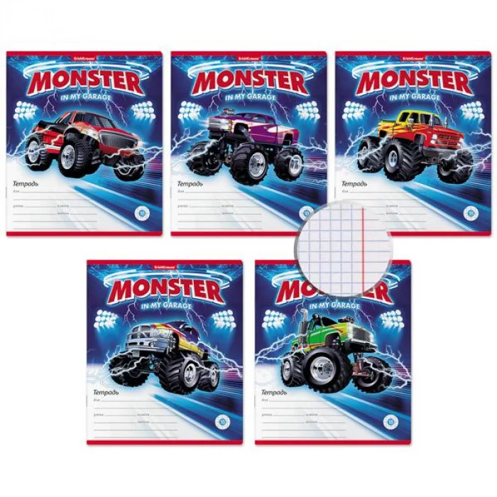 Тетрадь школьная ученическая ErichKrause Monster Car 18 листов клетка 49203