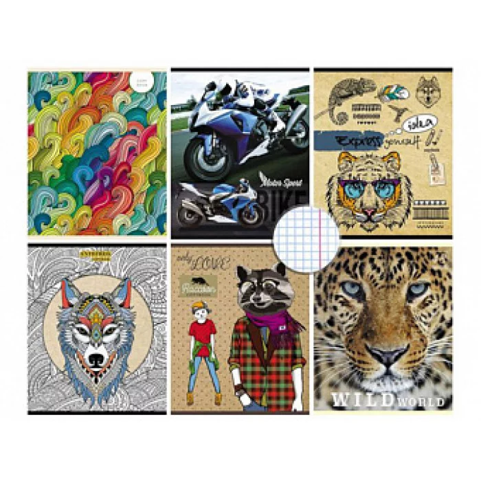 TМ"Profit"Тетрадь КЛЕТКА 18л. МИКС (18-1570) обл.-мелов. картон