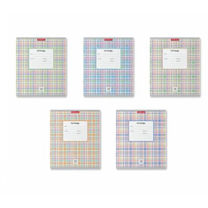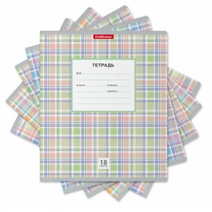 Тетрадь школьная ученическая ErichKrause Optima Новая шотландка ассорти 18 листов клетка 58217