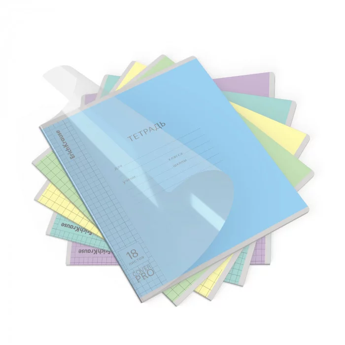 Тетрадь школьная 1шт пластиковой обложкой ErichKrause® Классика CoverPrо цвет ассорти, А5 18 листов, клетка 56356