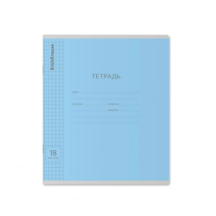 Тетрадь школьная ученическая ErichKrause® Классика с линовкой голубая, 18 листов, клетка 40010