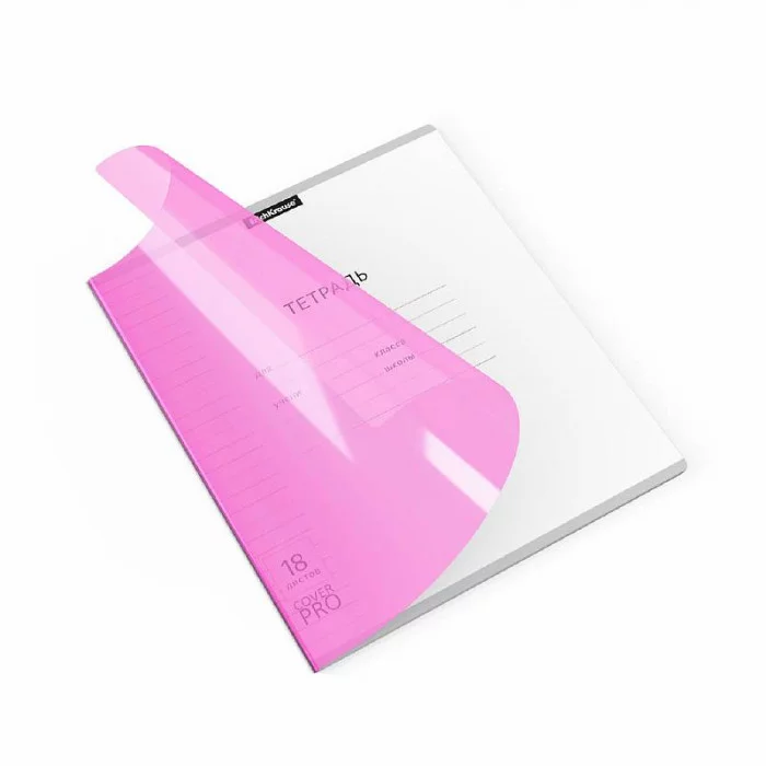 Тетрадь школьная ученическая с пластиковой обложкой на скобе ErichKrause Классика CoverPrо Neon, розовый, А5+, 18 листов, линейка 56373