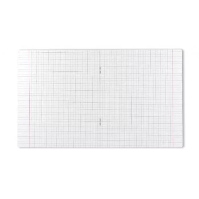 Тетрадь школьная ученическая формата А5+ (170x203 мм). Двойная обложка: внешняя выполнена из высококачественного износостойкого цветного пластика с фактурой «апельсиновая корка», внутренняя — из офсетной бумаги. В блоке 18 листов в клетку. Бумага офсетная плотностью 60 г/м2. Цвет линовки — синий. Скругленные уголки обложки и блока. Тип скрепления — скоба.