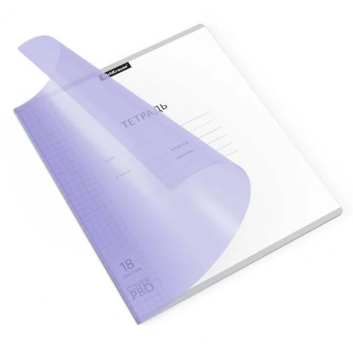 Тетрадь школьная ученическая с пластиковой обложкой на скобе ErichKrause Классика CoverPrо Pastel fizzy сиреневый A5+ 18 листов клетка 56362