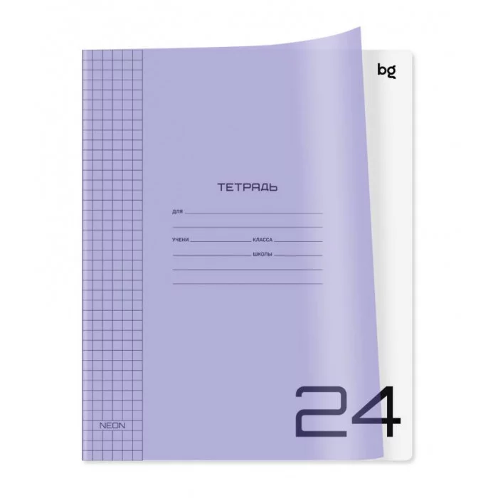Тетрадь 24л. клетка BG "UniTone. Neon", пластиковая обложка, неон сиреневый 359078