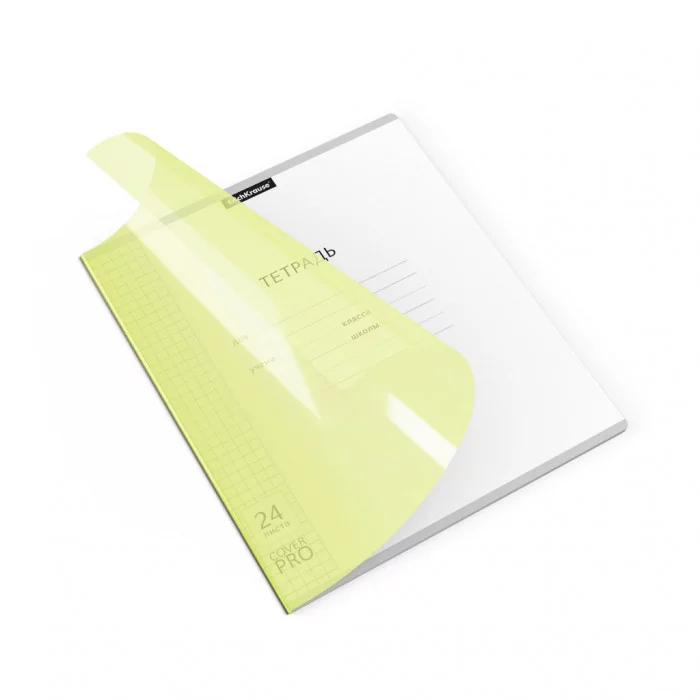Тетрадь школьная ученическая с пластиковой обложкой на скобе ErichKrause Классика CoverPrо Neon, желтый, А5+, 24 листа, клетка 56382
