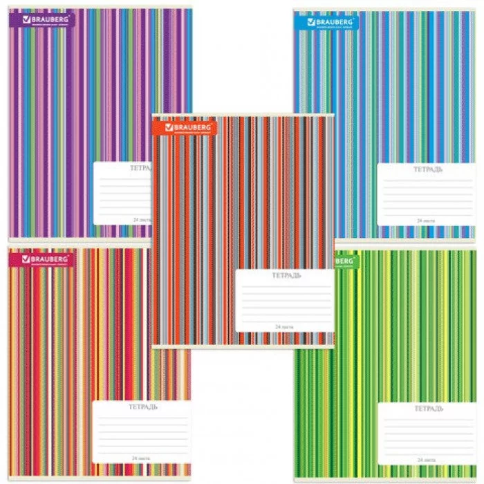 Тетрадь 24 л. BRAUBERG, клетка, обложка картон, ПОЛОСКИ, 401863