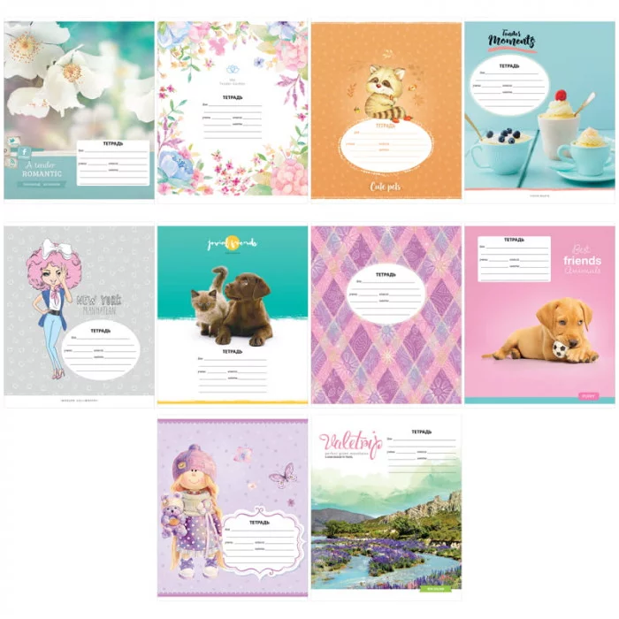 ВНИМАНИЕ: БОЛЬШИНСТВО ЭЛЕМЕНТОВ В НАБОРЕ МОГУТ ИМЕТЬ ОДИНАКОВЫЙ ДИЗАЙН. Тетрадь ArtSpace серии «Микс. Для девочек» формата А5 на скрепке состоит из 24 листов. Внутренний блок – это офсетная бумага плотностью 60-65 г/м², белизна - 100%, линовка – клетка с полями. Обложка тетради изготовлена из мелованного чистоцеллюлозного импортного картона. Обложка тетради ArtSpace – это микс ярких дизайнов для девочек с картинками: нежные цветы, милые животные, мультяшные персонажи, узоры, красочные пейзажи. Тетрадь соответствует требованиям Технического регламента Таможенного союза «О безопасности продукции, предназначенной для детей и подростков». Количество листов: 24; Линовка: клетка с полями; Белизна: 100%; Материал обложки: мелованный картон
