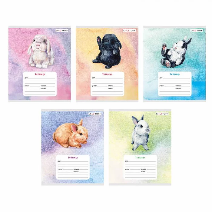 Тетрадь А5 24л. Скрепка. Линия. Обл.: мел. картон. Бум. оф.60 г/м2. Поля. Уп./гофр.. "Зайки"