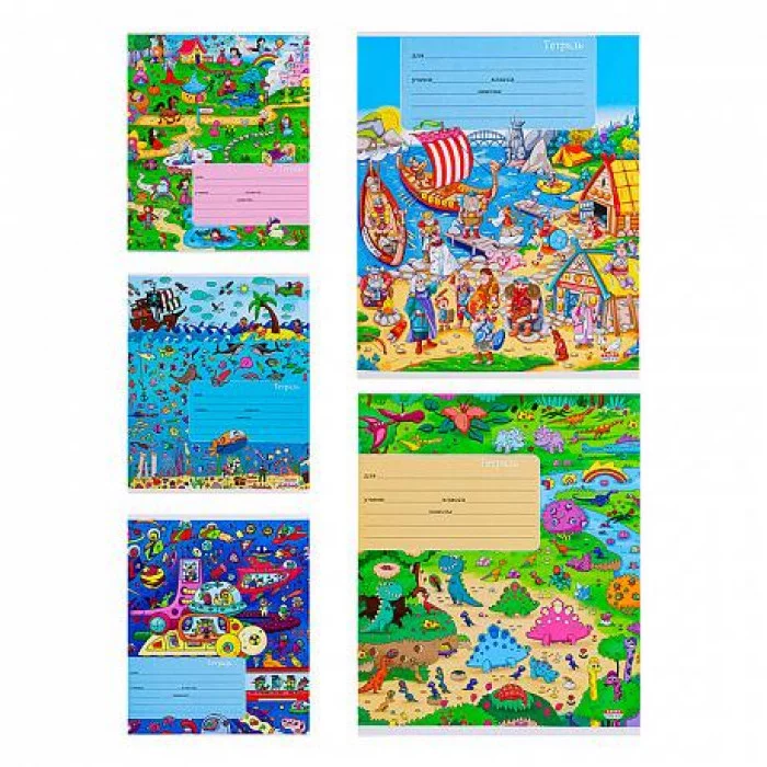 Тетрадь ЛИНИЯ 24л. СЮЖЕТЫ В КАРТИНКАХ (24-0116) цвет.мелов.обл..5 дизайнов в спайке ТЛ2620