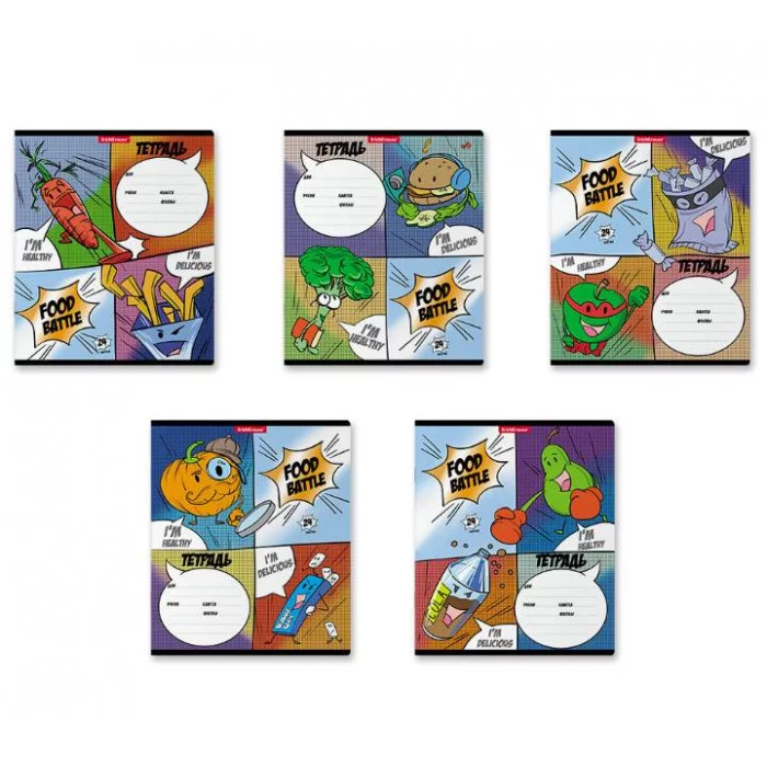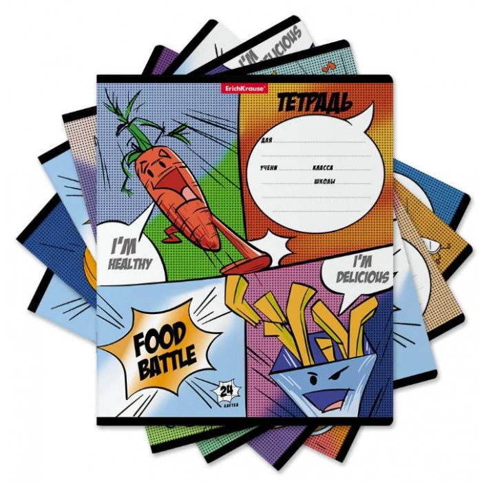 Тетрадь школьная ученическая ErichKrause® Food Battle, 24 листа, клетка MIX-PAC 58265 024010154-58265