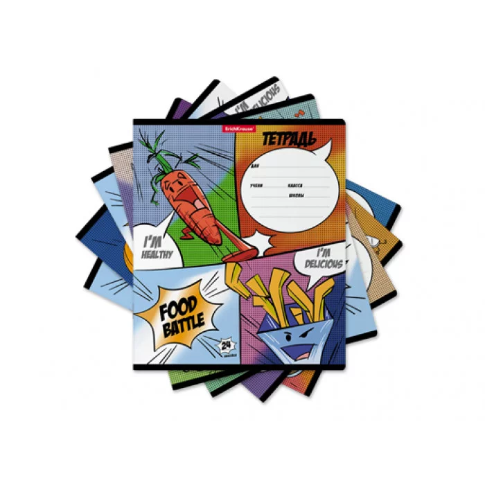 Тетрадь школьная ученическая ErichKrause® Food Battle, 24 листа, линейка MIX-PA 58266 ТЛ2508