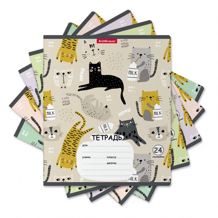 Тетрадь школьная ученическая ErichKrause Lying Cats, 24 листа, линейка MIX-PACK 58395