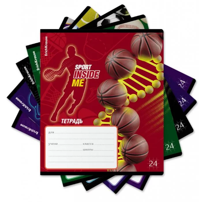 Тетрадь школьная ученическая ErichKrause Sport DNA, 24 листа, клетка, выборочный УФ-лак+конгрев 024019254-60590