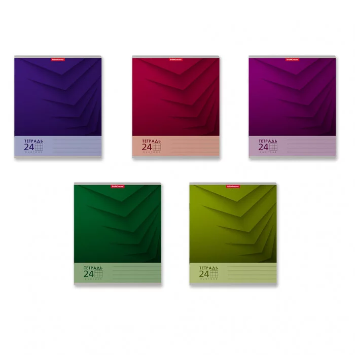 Тетрадь школьная ученическая формата А5+ (170х203 мм). Обложка из высококачественного мелованного картона плотностью 180 г/м2. В блоке 24 листа в клетку с полями. Бумага офсетная плотностью 60 г/м2. Цвет линовки - синий. Скругленные уголки обложки и блока. Тип скрепления - скоба. Тетради разных цветов упакованы в термоусадочную пленку по 10 штук.