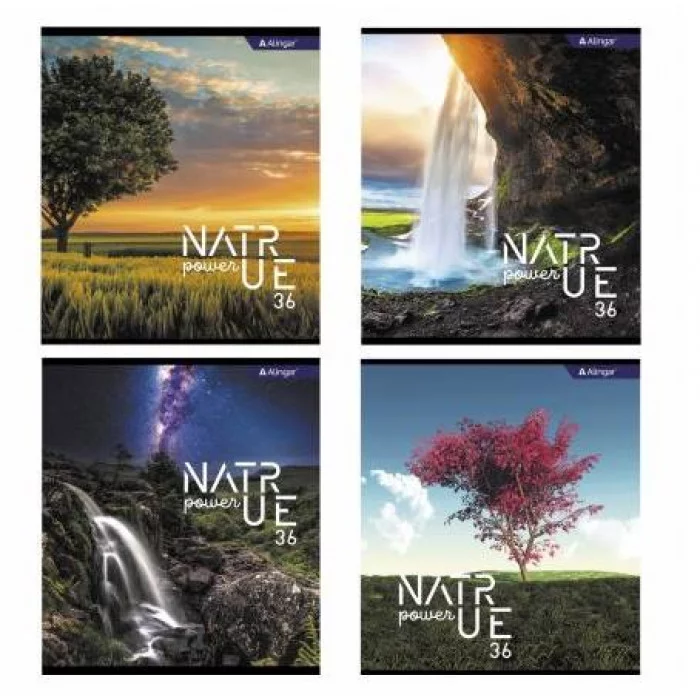 Тетрадь 36 л., А5, клетка, Alingar "Nature power", скрепка, второй блок 60г/м2, мелованный картон (стандарт) AL10821