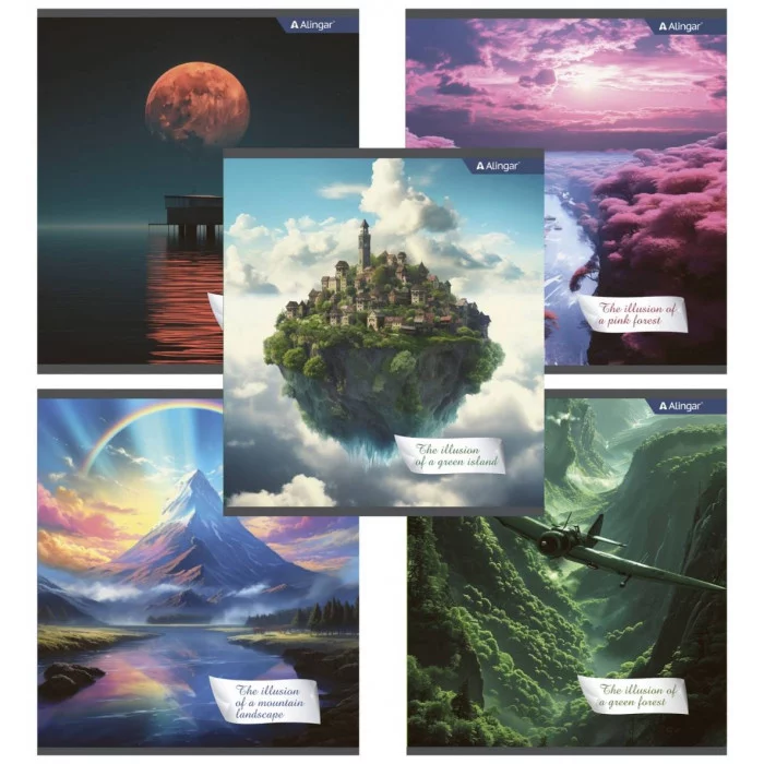 Тетрадь 36 л., А5, клетка, Alingar "Необыкновенные пейзажи", скрепка, офсет, мелованный картон (стандарт),е т/у AL11486