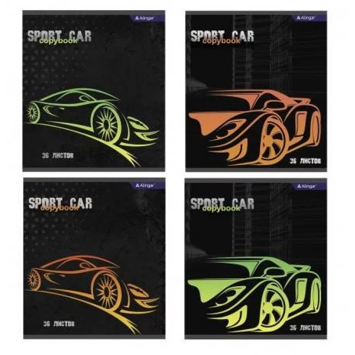 Тетрадь 36 л., А5, клетка, Alingar "Sport car", скрепка, второй блок 60г/м2, мелованный картон (стандарт) т/у AL9900