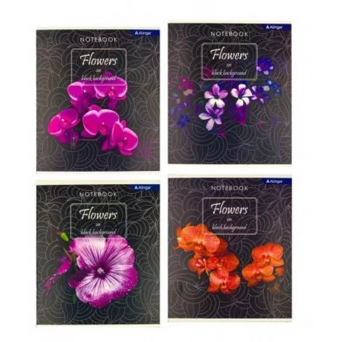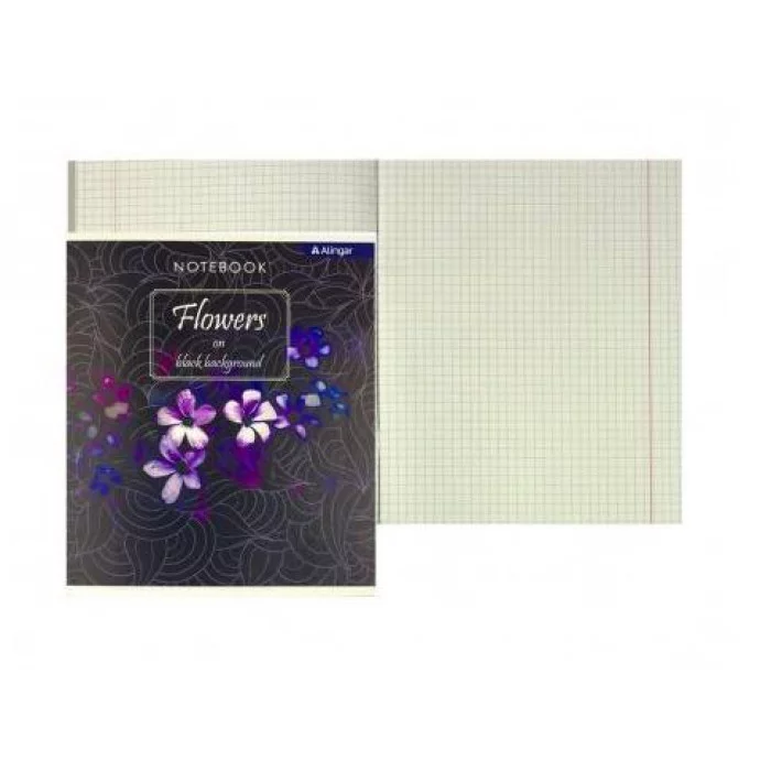 Тетрадь 36 л., А5, клетка, Alingar "Цветы ", скрепка, второй блок 60г/м2, мелованный картон (стандарт) т/у AL6952