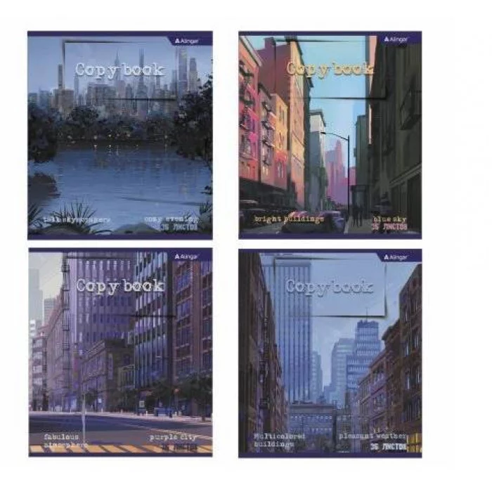 Тетрадь 36 л., А5, линия, Alingar "Вечерний город", скрепка, второй блок 60г/м2, мелованный картон (стандарт)