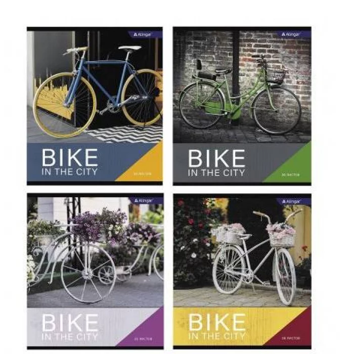 Тетрадь 36л., А5, клетка, Alingar "Bike in the city", скрепка, мелованный картон (стандарт) , блок офсет, AL10362