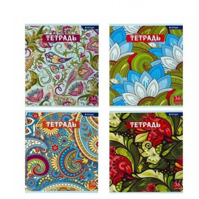 Тетрадь 36л., А5, клетка, Alingar "Цветочная", скрепка, блок офсет, 100% белизна мелованный картон (эконом) AL7927
