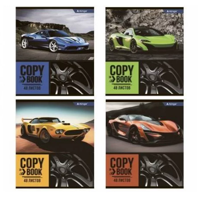 Тетрадь 48л., А5, клетка, Alingar "Авто", скрепка, мелованный картон (стандарт), блок офсет AL8881