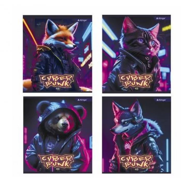 Тетрадь 48л., А5, клетка, Alingar "Cyber punk", скрепка, мелованный картон (стандарт), блок офсет AL10817