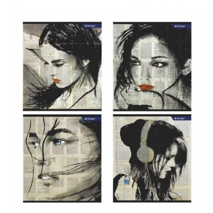 Тетрадь 48л., А5, клетка, Alingar "Girls from newspapers", скрепка, мелованный картон (стандарт), блок офсет AL10385