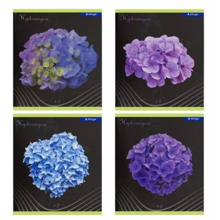 Тетрадь 48л., А5, клетка, Alingar "Hydrange", скрепка, мелованный картон (стандарт), выб УФ лак, блок офсет, 4 дизайна в пленке т/у