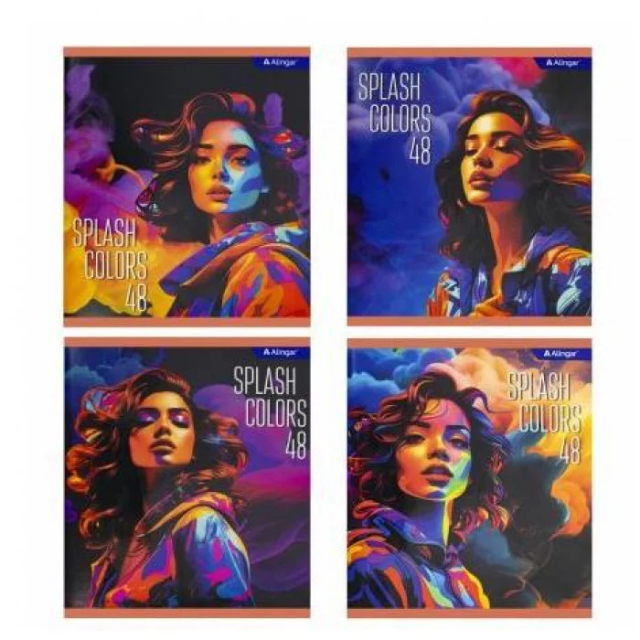 Тетрадь 48л., А5, клетка, Alingar "Splash colours", скрепка, мелованный картон (стандарт), выб УФ лак, блок офсет AL10912