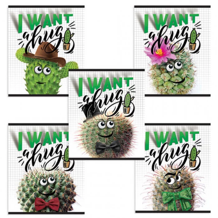 Тетрадь А5, 48 л., ПЗБМ, скоба, клетка, конгрев, выборочный TWIN лак, "Приколись - Кактус" (5 видов), 028214