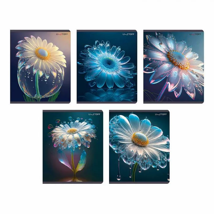 Тетрадь А5 48л. Скрепка. Клетка. Обложка: мелованный картон, ламинация Glitter. Бумага белый офсет 60г/м2. Поля. Скругленные углы. "Фантастические цветы"