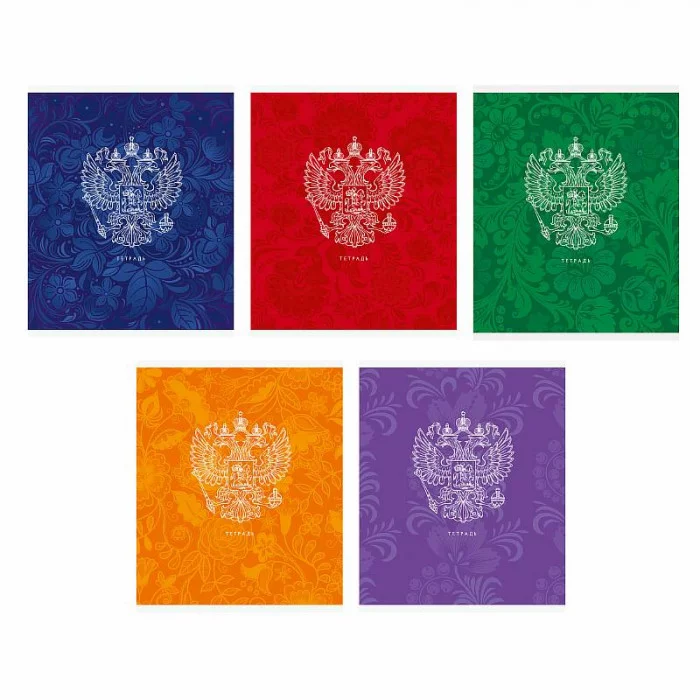 Тетрадь А5 48л. Скрепка. Линия. Обл.: мел. картон. Бум. оф.60 г/м2. Поля. В уп. 5 видов. Уп./гофр.. "Государственная символика"
