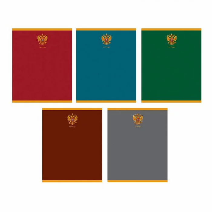 Тетрадь А5 48л. Скрепка. Линия. Обл.: мел. картон. Бум. оф.60 г/м2. Поля. В уп. 5 видов. Уп./гофр.. "Государственный символ"