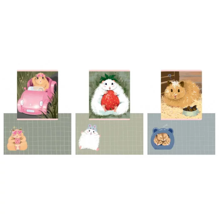 Стильная и лаконичная тетрадь для ваших заметок и идей! Обложка из прочного мелованного картона с приятным на ощупь soft-touch покрытием. Приятный дизайн с милыми хомячками и удобный формат А5 делают ее идеальным выбором для учебы или работы. Внутри — 48 листов высококачественной бумаги плотностью 60 г/м с четкой разлиновкой в серую клетку. Специальный титульный лист поможет аккуратно оформить тетрадь и не перепутать ее с другими. Наслаждайтесь комфортом и практичностью с нашей новой тетрадью!
