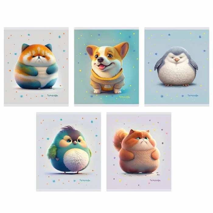 Тетрадь А5 48л. Скрепка. Клетка. Обл.: мел. картон. Бум. оф.60 г/м2. Поля. В уп. 5 видов. Уп./гофр.. "Кругляши"