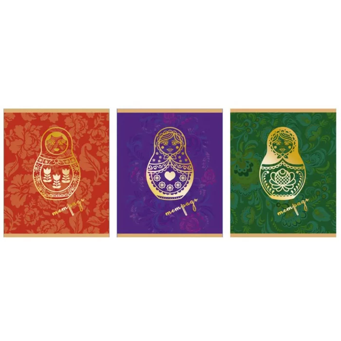 Тетрадь общая 48 листов, А5 формата Эксмо — идеальный помощник для записей важных мыслей, идей и конспектов.Позолоченные матрешки на ярком фоне придутся по душе всем патриотам и тем, кому интересна русская культура.Классический внутренний блок в клетку делает тетрадь универсальной в использовании. Тиснение фольгой красиво переливается и притягивает внимание. Крепление скрепка. Внутренний блок: офсет белый 60гр/м. Линовка: клетка.