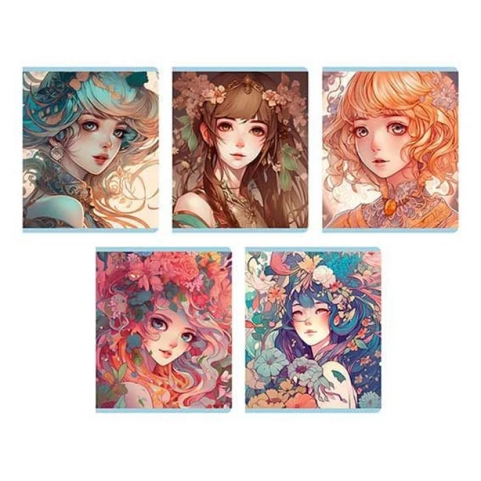 Тетрадь А5 48л. Скрепка. Клетка. Обложка: мелованный картон, ламинация soft-touch, 3D фольга. Бумага белый офсет 60 г/м2. Скр.угл. Поля. "Нимфы"