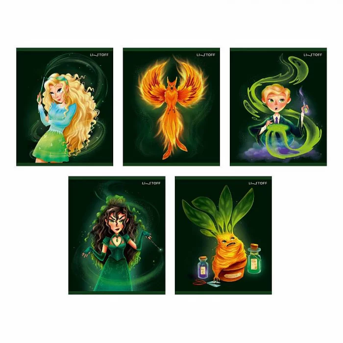 Тетрадь А5 48л. Скрепка. Клетка. Обл.: мел. картон, выб. лак, блестки "Изумруд". Бум. оф.60 г/м2.. "Школа волшебства (Эксклюзив)"