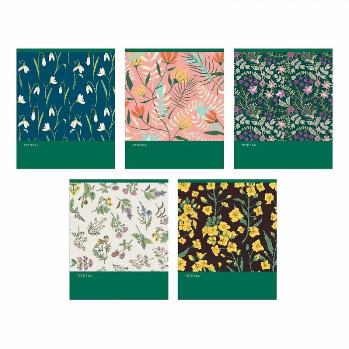 Тетрадь А5 48л. Скрепка. Клетка. Обл.: эконом. Бумага офсет 60г/м2. Поля. В уп. 5 видов. Без термоусадки. "Цветочный сад"