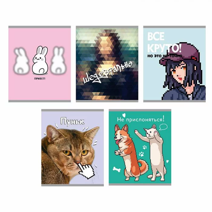 Тетрадь А5 48л. Скрепка. Клетка. Двойная обложка: 1-ая: прозрачный пластик с печатью. 2-ая: мелов.бумага. Бумага белый офсет 60г/м2. Скр.углы. Поля. "WEB"